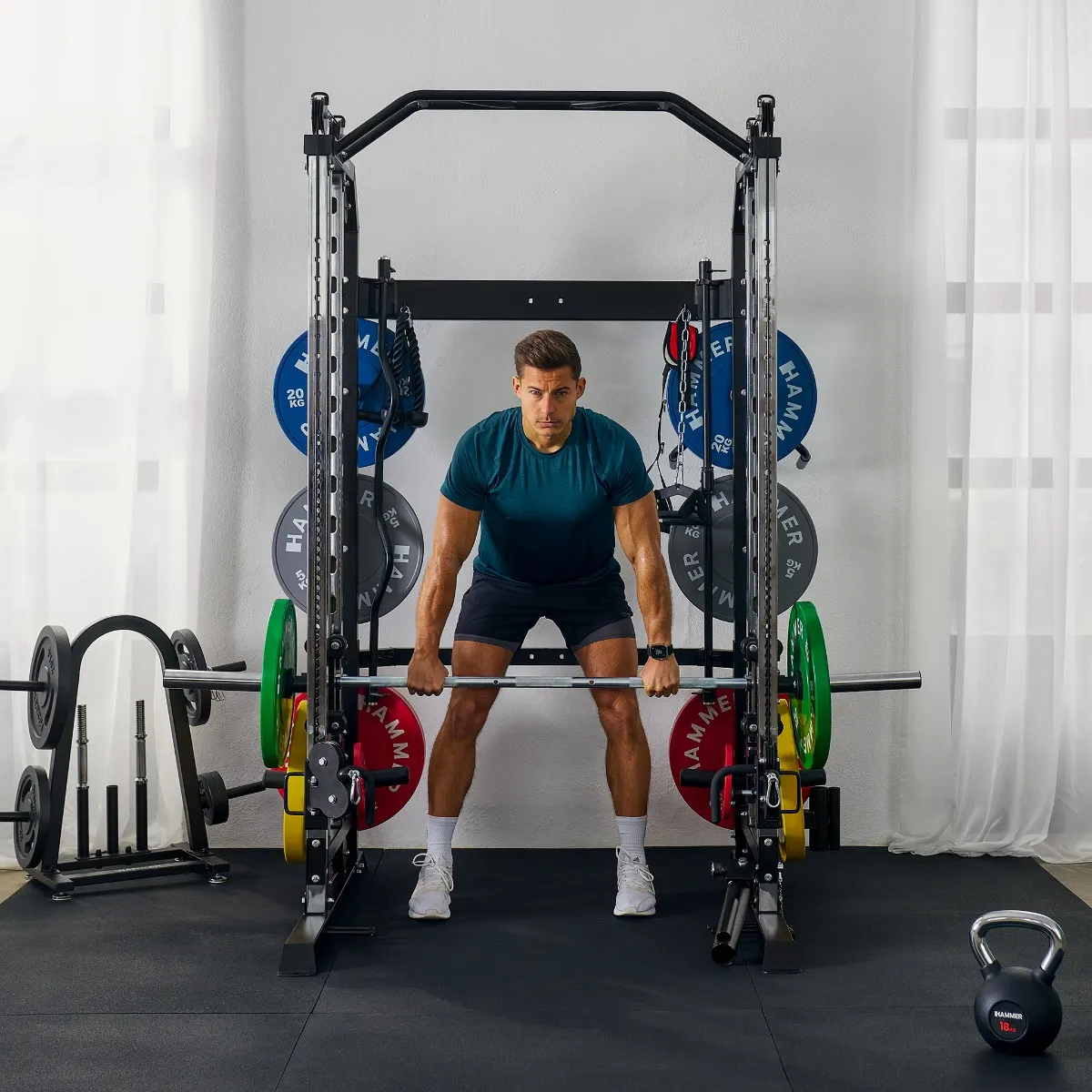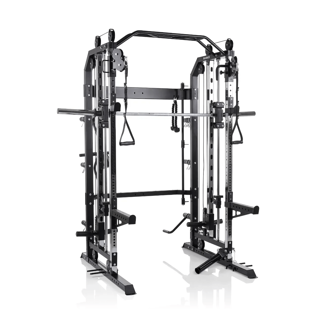 Jõujaam Hammer Autark Smith Machine on Teie kodune jõusaal mitmekülgseks jõutreeninguks. See kombineerib multi pressi, kaablisüsteemid ning tõstekangiga treeningu ühes masinas ning võimaldab kogukeha treeningut. Vastupidavad hoidikud kannavad kuni 135 kg ning nendel saab kasutada nii 30 mm kui ka 50 mm raskuskettaid. Seadmele on võimalik lisada veel osi, et lisada veelgi harjutuste võimalusi.
